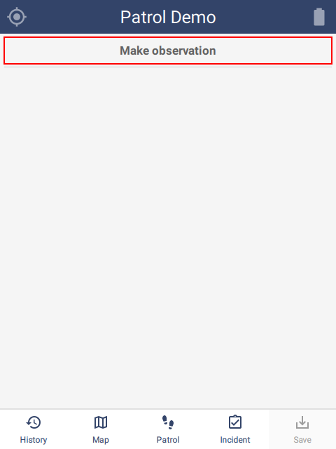 An incident is composed of one or more observations. To create a new observation, tap the Make observation button on the observation home page.