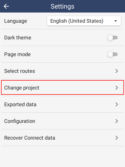 The Change project option provides a simple way to change the current project. Normally this would require exiting the project and returning to the main screen. However, by placing the option here as well, it works within Kiosk mode. See section 4.