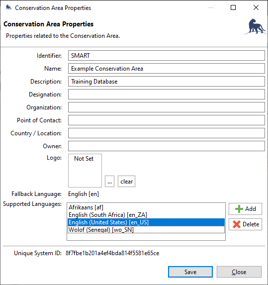The language here is defined in the Conservation Area Properties dialog, off the Conservation Area menu.
