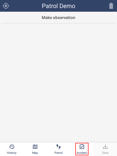 Independent incidents are observations which are not connected to a Patrol/Survey. There are two ways of creating an Independent incident: directly from the start page with the REPORT INCIDENT button, or during a Patrol/Survey using the Incident button on the bottom toolbar. These two methods are identical.