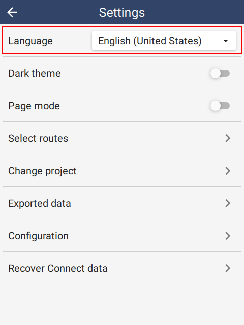 In SMART Mobile, the current language can be selected from the available languages in the Conservation Area.