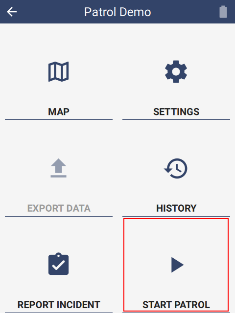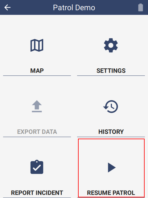 To resume a patrol, tap the RESUME PATROL button on the start page. A location will be taken and then the patrol will be resumed.