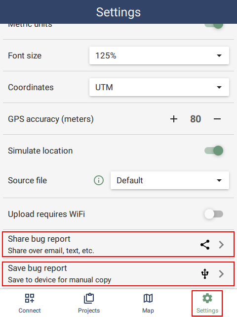 When reporting an error or unexpected condition, a bug report is essential. When asked to create one, go to the main Settings tab and scroll to the bottom: