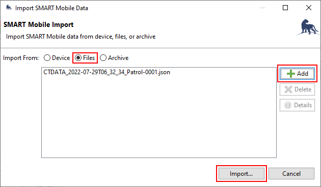 Open the Import SMART Mobile Data dialog, Add the file and click Import.