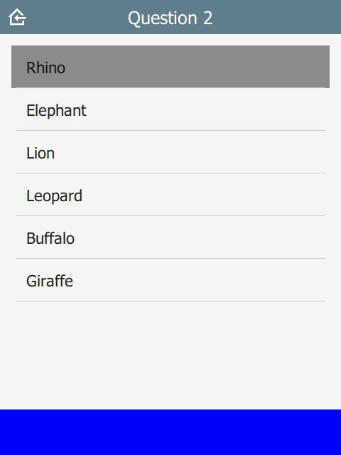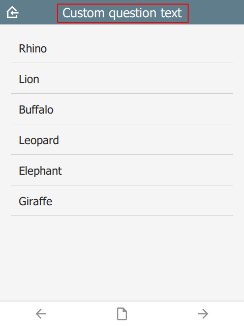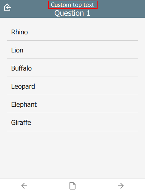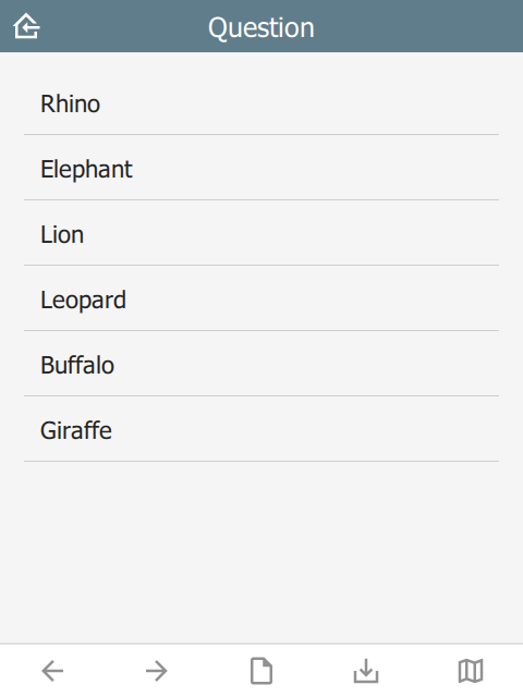 Each question in an XlsForm is given one page in the UI. The page is divided into 3 segments: header, content and footer: