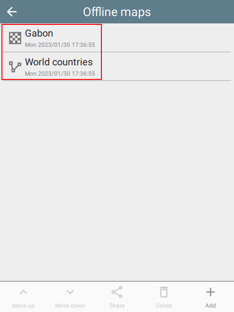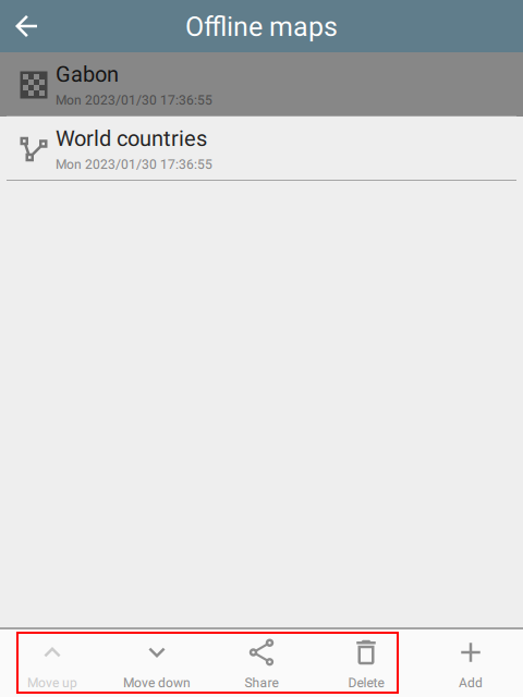 Note that the Settings page for offline maps also supports re-ordering the layers, sharing with others and even deleting them: